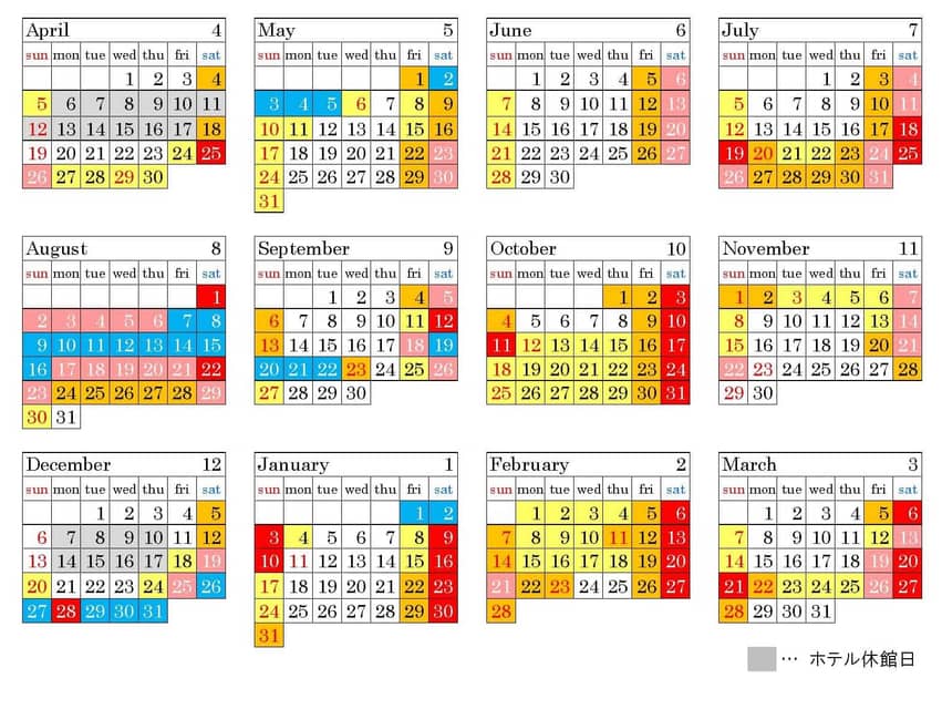 2026年度 ご宿泊カレンダー