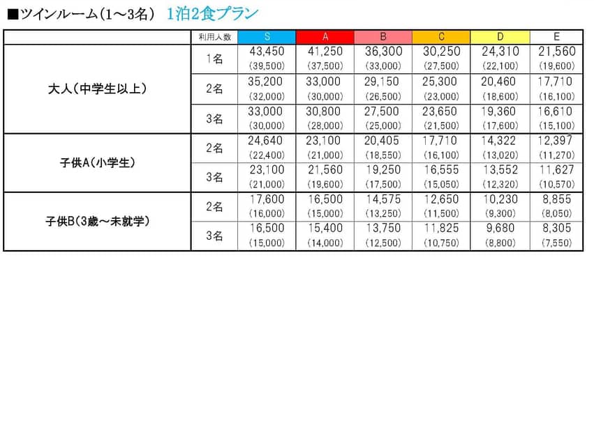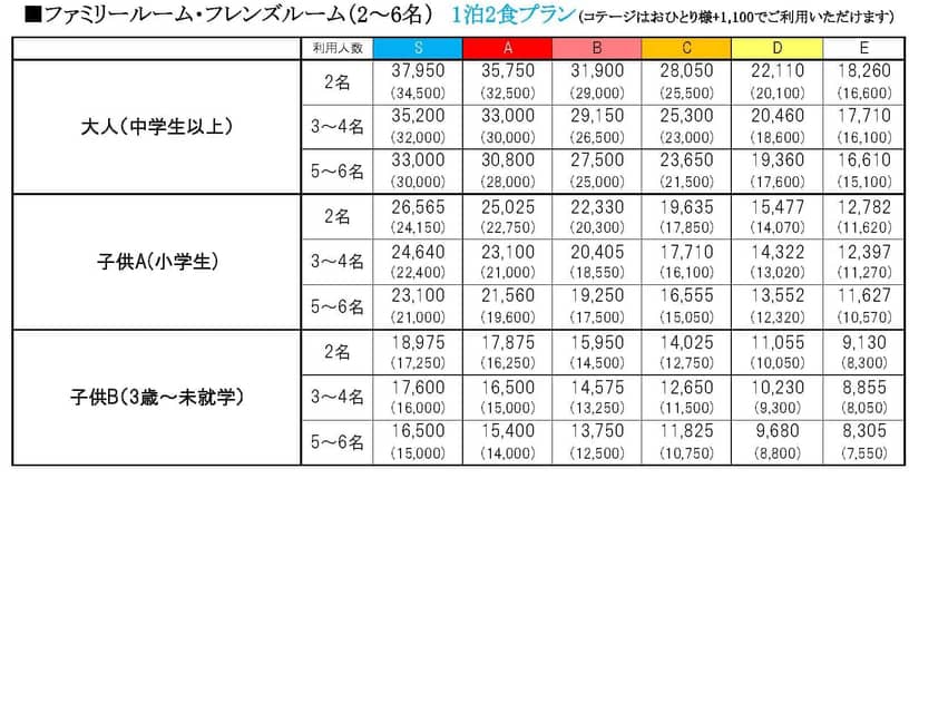 2026年度 ご宿泊料金